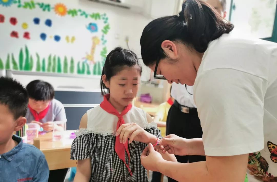 快乐1次方——双节合璧 6月6日,当“六一”儿童节撞上了端午节,无锡处团总支组织团青代表走进惠山区特殊教育学校,为孩子们腕绕彩缕,陪伴孩子们体验传统节日蕴含的民间特色。