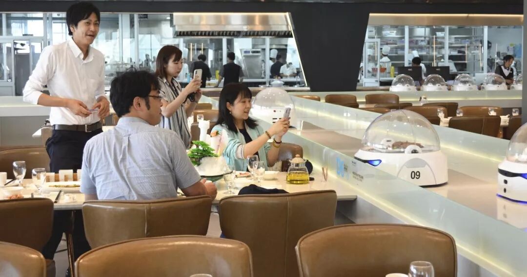 在二楼机器人餐厅,久保雅信一行饶有兴致地观摩了机器人送餐的全流程,对阳澄湖服务区将智能化、信息化设施与运营管理相结合的做法深表赞许。