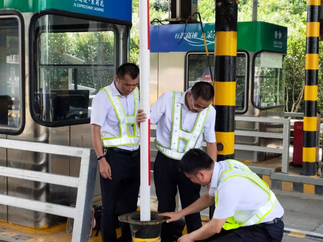 当日凌晨1点,一辆装载电动扶梯的平板大货车驶入横山站入口01车道,因行驶过程中电动扶梯发生倾斜,致使车辆卡在防撞柱上,无法正常通行。 横山站共有三个入口车道,一个车道被“卡”后,由于超宽车道正在进行入口治超施工,现场仅剩一个入口车道可以通行。 情况紧急,收费站迅速上报指挥调度中心请求支援。凌晨1:40分,排障、路政、交警陆续赶到现场。因车辆卡住防撞柱无法进行清障作业,且驾驶员担心货物遭到损坏,拒绝使用吊车起吊货物,现场陷入“僵局”。 ▲ 多方联动现场进行防撞柱切割 最终,经过多方讨论协商,决定实施“切割道口防撞柱,扩大右侧空间让车辆自行通过”的方案。3:40分,应急单位赶到场进行作业;5:14分,防撞柱切割完成,车辆顺利驶离道口,车道恢复畅通。 为切实做好入口治超施工期间道口安全保畅工作,横山站结合此次事件,迅速落实多项“入口保畅”措施:一是通过可变情报板、LED宣传屏等加强宣传,引导车辆有序通行;二是将劝退关口“前移”,收费现场亭外执勤人员加强现场监管,对“三超”车辆“提前发现、及时劝退”;三是在防撞柱未修复之前,用废旧栏杆临时替代防撞柱,起到警示和防护作用,避免类似事情再次发生。 ▲ 用废旧电动栏杆临时“替补”防撞柱