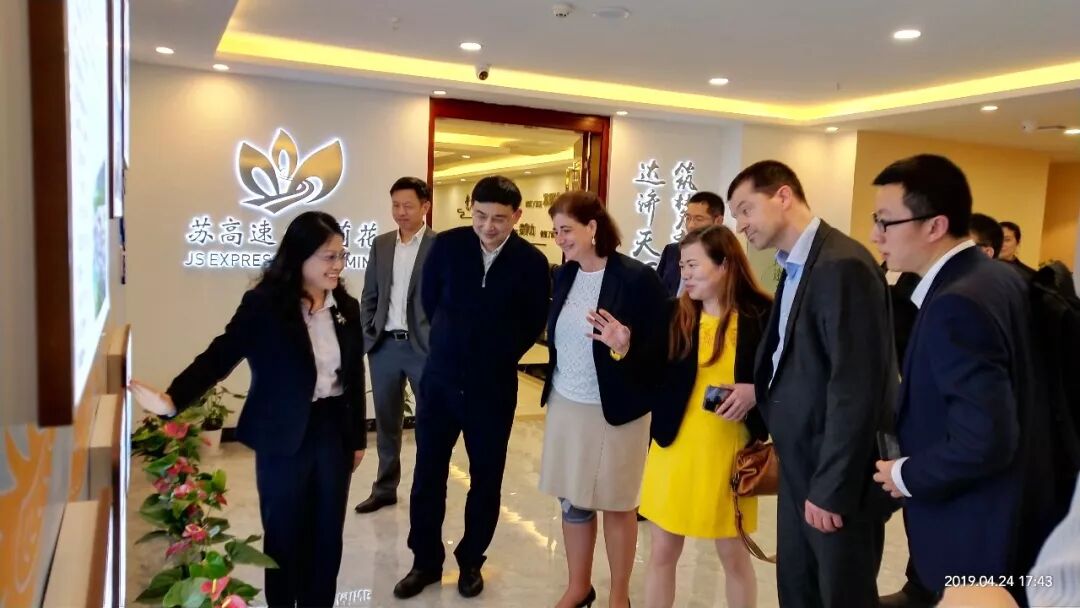 4月24日,法国法巴租赁集团总裁夏洛特一行来到黄栗墅服务区参观考察,控股公司党委书记、董事长蔡任杰,控股公司副总经理兼宁沪公司党委书记、董事长顾德军,宁沪公司党委副书记、总经理孙悉斌,副总经理颜耘等陪同考察。