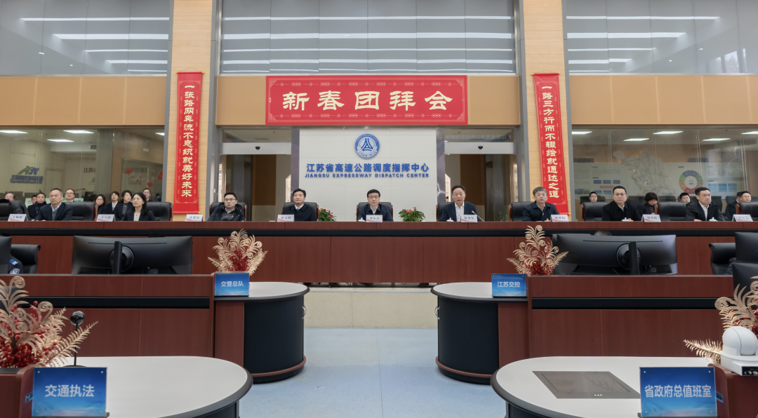 2月5日,新春工作日第一天,江苏交控党委书记、董事长邓东升,总经理、党委副书记陈金东,党委副书记、工会主席陈玉明,副总经理陈仲扬、孙悉斌,省派驻纪检组组长周奇恒,总会计师于兰英,副总经理丁文虎等领导班子成员到江苏省高速公路调度指挥中心,通过视频连线方式举行江苏交控系统新春团拜会,看望慰问“一路多方”干部职工。陈金东主持团拜会。团拜会上,江苏高网对春节期间路网运行情况和服务保障措施进行了汇报,系统内各单位负责同志以视频会议形式汇报了春节期间运营及安全生产情况。今年春节期间,江苏交控所属各单位勠力同心,联合交警、交通执法部门,全力保畅通、快救援、优服务,圆满完成了路网安全保畅工作,在路网流量上升1.86%的情况下,日均拥堵里程降低,路网总体运行平稳有序。在团拜会上,邓东升代表江苏交控党委,向春节期间奋战在一线的全系统干部职工、“一路多方”工作人员以及背后默默支持的家属们致以新春的祝福并表示衷心的感谢。他说,面对这场年年熟悉又年年不易的春运攻坚战,交通运输部、省委、省政府高度重视,各单位人员到位、设备到位、措施到位,全体干部职工特别是基层同志,舍小家、为大家,坚守在工作一线,奋战在春运现场。“一路多方”高效联动、相互补位,守护了千家万户的团圆路,非路桥单位春节期间加强值班值守,实现安全、平稳、有序运行,让人感动、令人敬佩。“祝大家在新的一年里,身体健康、工作顺利、阖家幸福”。在省调度指挥中心、沪宁高速南京收费站、江苏交控大厦,邓东升在送上祝福的同时,还鼓励全系统干部职工,要迅速调整状态,尽快集中精神、调整状态,做到人员归位、思想回位、工作到位,努力营造紧张快干、埋头苦干、真抓实干的浓厚氛围,为圆满完成全年工作目标奠定良好基础;要高效推进工作,以“开工即决战、起步即冲刺”的心态,统筹谋划重点任务和具体工作,强化责任担当、狠抓工作落实,确保各项工作有力有序推进,努力交出“十四五”优异答卷,为实现“十五五”良好开局打牢基础;要抓好春运收官,当前正迎来返程高峰,要密切关注流量变化,加大管控疏导力度,切实做好路网保畅,坚决守牢安全底线,全力打造平安春运、便捷春运、温馨春运,为全省社会经济发展创造和谐稳定环境。江苏交控相关部室负责人、公司本部及所属各单位干部职工代表参加团拜会。
